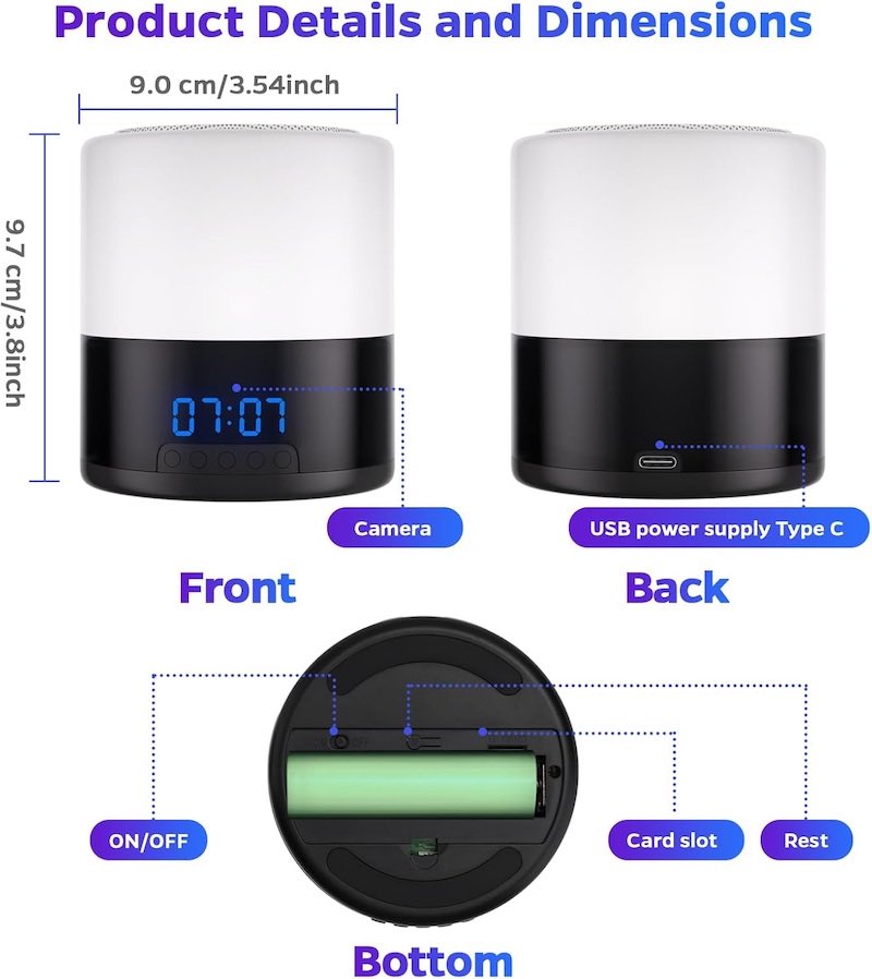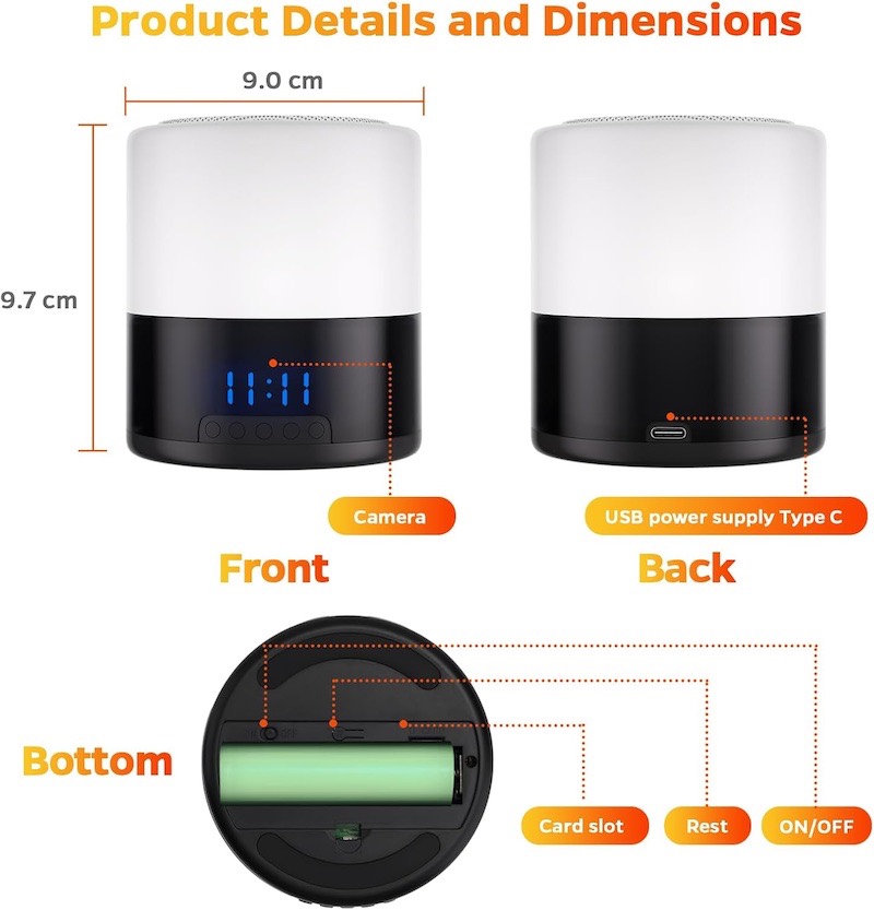 Invisible Surveillance: Features a 2.0 Megapixel CMOS lens hidden within a working lamp. To the naked eye, the pinhole camera is virtually undetectable.