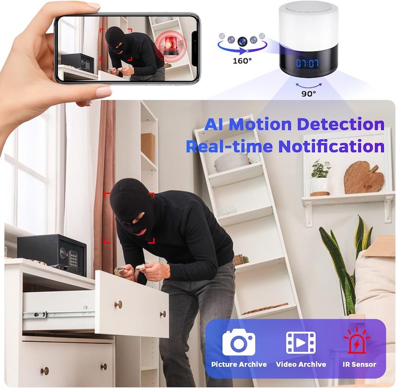 Discreet & Functional Design: Operates as a fully functional, modern desk lamp, making it an unobtrusive addition to any room while providing 24/7 security coverage.