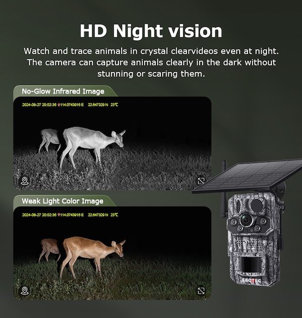 Unlike standard trail cameras, the 4G Pro Outdoor Solar Security Camera is a complete, interactive security hub. It doesn't just record to a card; it sends instant push notifications, emails, or MMS alerts the second motion is detected. With the dedicated iOS/Android app, you can download footage remotely, meaning you never have to physically visit the camera to retrieve evidence.