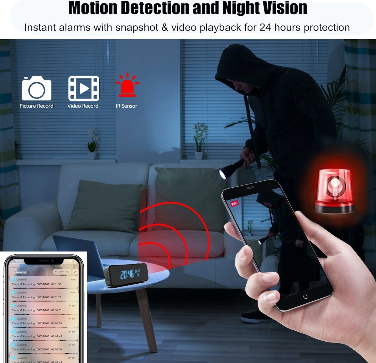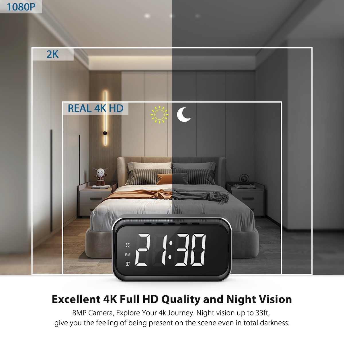 Upgrade your home or office security with the 4K Ultra HD Desk Clock. This isn't just a stylish, dual-alarm digital clock—it’s a high-performance monitoring system designed to provide peace of mind through crystal-clear 4K resolution and seamless connectivity.