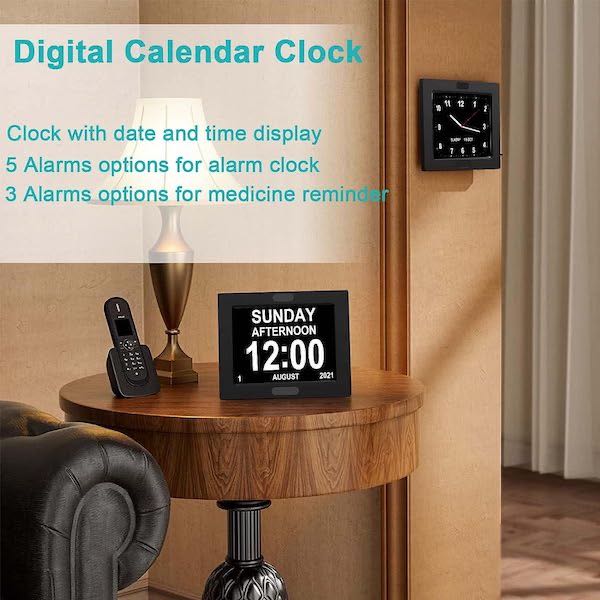 Medicine & Daily Alerts: Includes a programmable "Medicine Time" chime and visual alert to assist with daily health routines or task management.